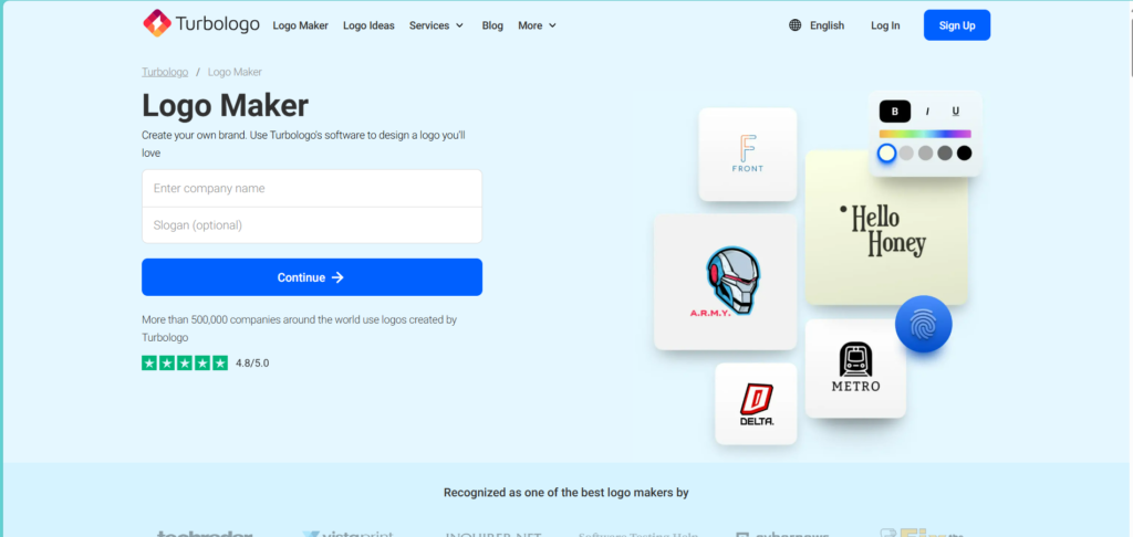 If you’re an entrepreneur, freelancer, or small business owner looking for a straightforward, budget-friendly logo maker, Turbologo is a great option.